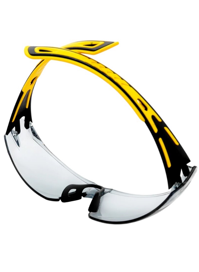 Панорамные затемненные линзы, два уровня защиты: фронтальный, боковой. Дужки двухцветные из тэрмоэластопласта (ТЭП). На переносице и заушниках мягкий, тактильно-приятный материал.
